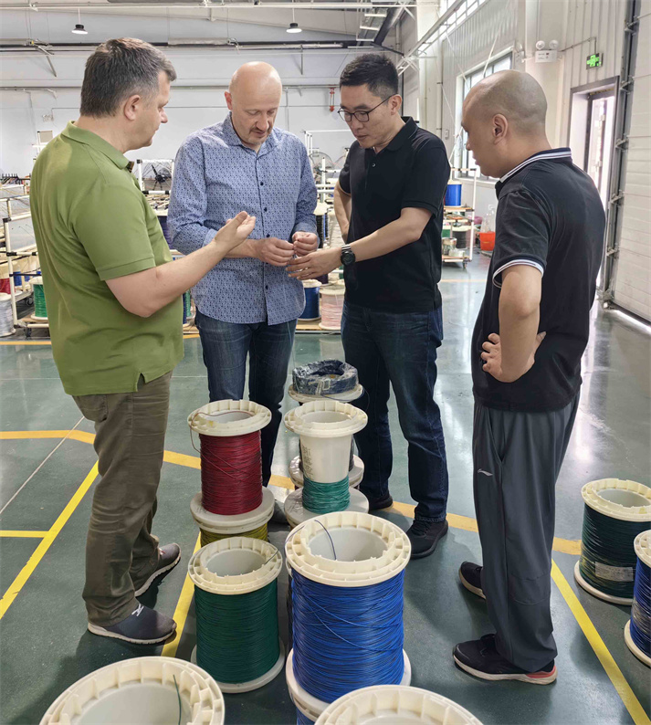 考察團(tuán)一行先后參觀了線束生產(chǎn)車間和導(dǎo)線生產(chǎn)車間,在參觀過程中,劉忠明為客戶詳細(xì)介紹了創(chuàng)大線束各項(xiàng)生產(chǎn)工藝流程、質(zhì)量控制、研發(fā)創(chuàng)新等情況。參觀結(jié)束后,考察團(tuán)對(duì)我公司的廠區(qū)環(huán)境、生產(chǎn)能力、工藝水平、設(shè)施設(shè)備等各方面表示充分的肯定。